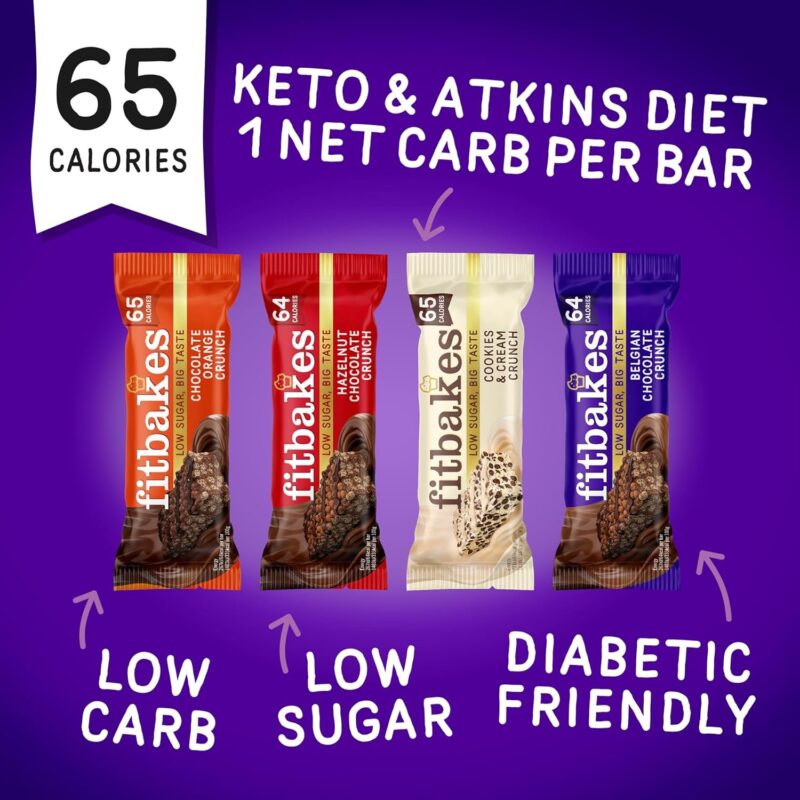 【Flash Sale】Fitbakes Gifts Diabetic Chocolate Gift Box (14x19g) Crunchy Mini Chocolate Keto Snack Bars, Sweet Diabetic Biscuit Food Treats Hamper, 65 Calories, Low Calorie Snack For Women & Men, Fit Bake