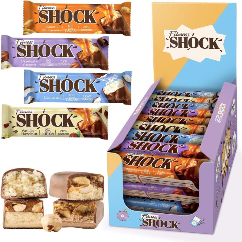 【Flash Sale】FitnesSHOCK Protein Bar Mix Box 24-Variety-Pack, No Added Sugar, High 20% Protein, Low Carb, Lower Calories, Rich in Fiber 24x50g