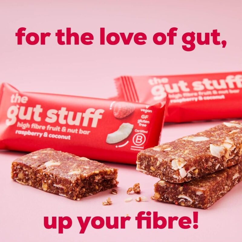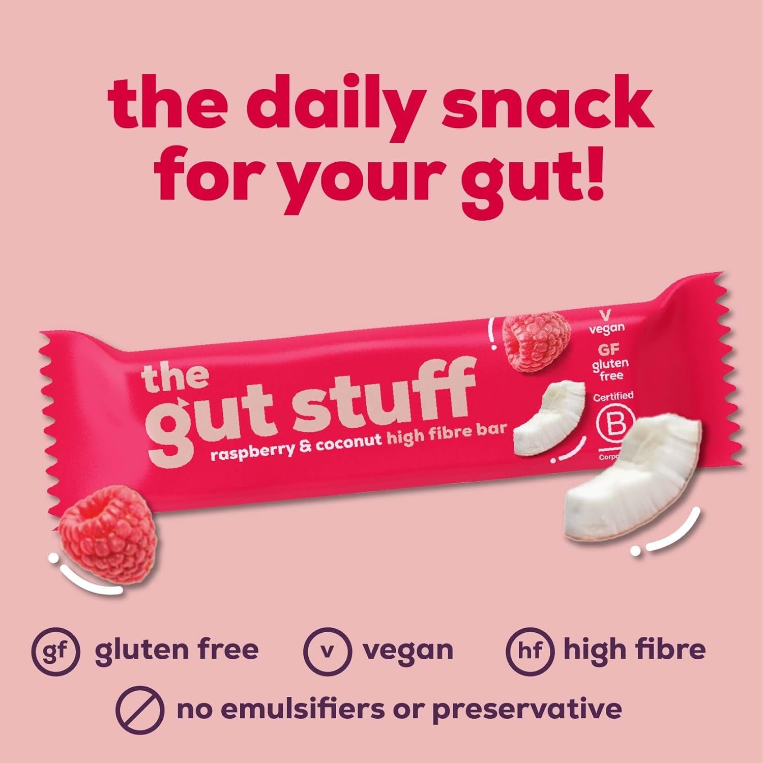 【Limited-Time Offer】The Gut Stuff High-Fiber Fruit & Nut Bars – Gut-Healthy Snacks, Gluten-Free, Vegan, Low-Calorie, All-Natural – Raspberry & Coconut Flavor, 12 x 35g Boxed