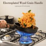 • 【Heat-Resistant Handles and Glass Lids】 The electroplated wood-grain handles are ergonomically designed for a comfortable grip. heat-resistant. and slip-resistant. The shatter-resistant narrow-edge glass lids allow you to monitor the cooking process while effectively preventing food splatters. delivering a clean. splash-free cooking experience.