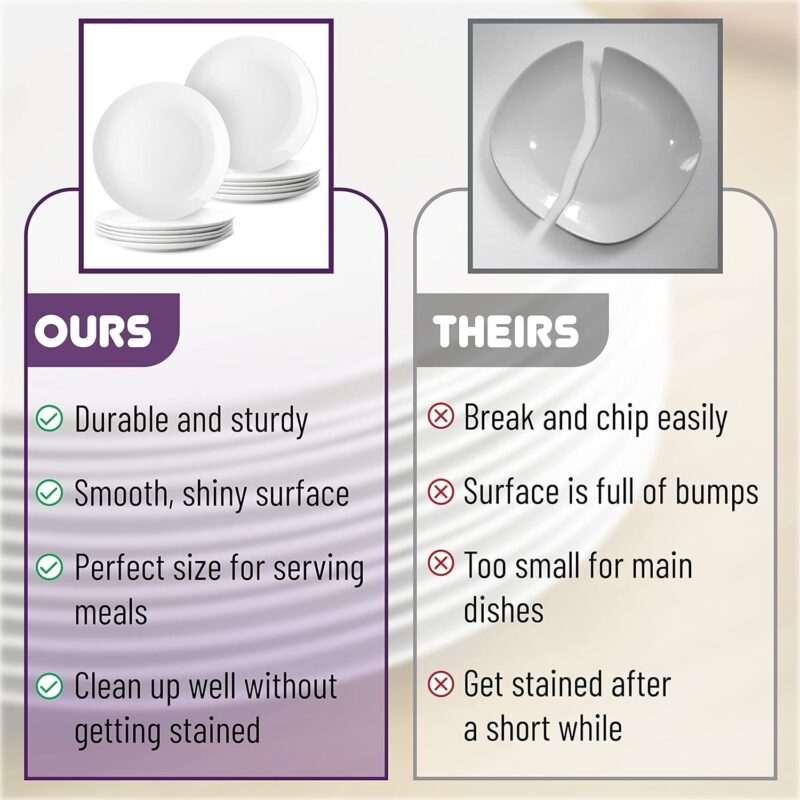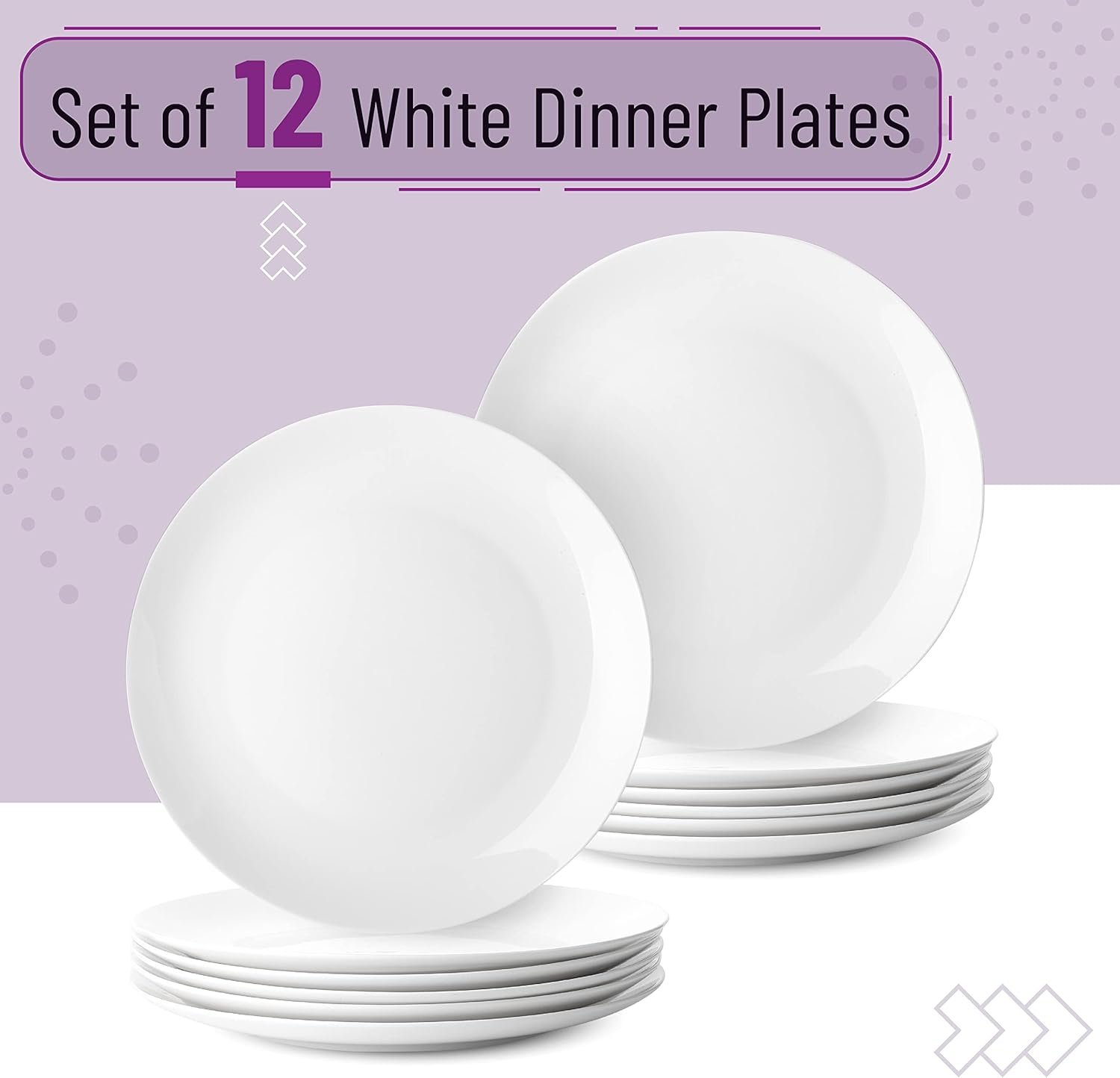 - Package includes a set of 12 white dinner plates.