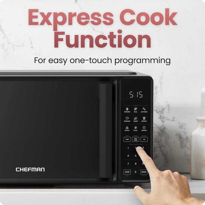 _Chefman Countertop Microwave Oven 0.7 Cu. Ft.. 700 Watts with 10 Power Levels. 6 Cooking Presets with One-Touch Express Cook. Eco Mode. Child Safety Lock. & Mute Button - Black