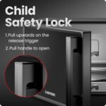 • SAFETY FIRST: The built-in child safety lock on the handle ensures the door doesn’t open accidentally. and you can disable the microwave control panel using the Lock Mode.