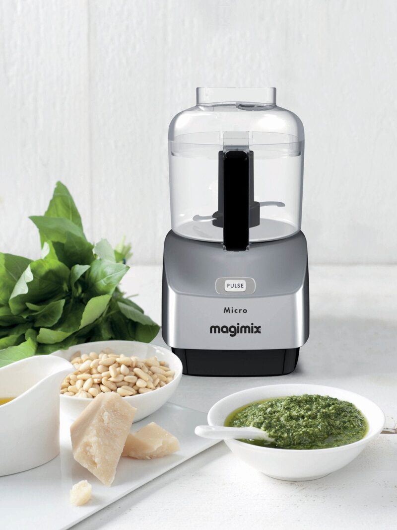 Simple and effective the Magimix Le Micro mini chopper is suited to your everyday tasks letting you to chop. puree. blend and liquidise at the touch of a button. Easy to use: 2 blades. 1 button. Chop. mince and purée with ease using the Sabatier stainless steel blade.