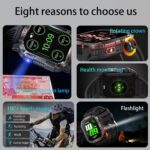 100+ sports modes: This men’s sports smart watch supports more than one hundred indoor and outdoor sports modes. which is suitable for the needs of different sports enthusiasts and can record daily life and sports data such as steps. calories. time and distance. etc. In addition. this smartwatch is very suitable for outdoor adventures. with sports modes such as mountaineering and hiking. as well as compass. altimeter. barometer. and is a good helper for outdoor sports.